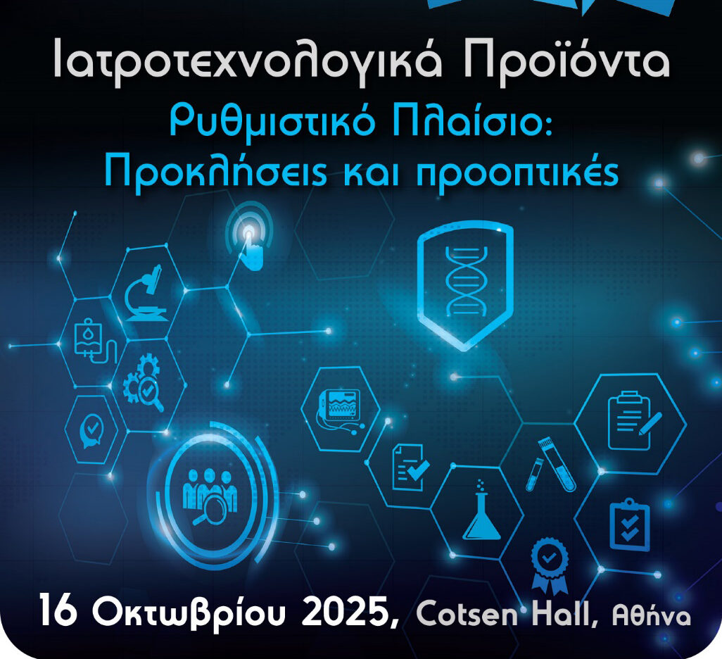 Ο Σύνδεσμος Επιχειρήσεων Ιατρικών & Βιοτεχνολογικών Προϊόντων (ΣΕΙΒ) και ο Τομέας Regulatory, διοργανώνoυν Ημερίδα με θέμα «Ιατροτεχνολογικά Προϊόντα – Ρυθμιστικό Πλαίσιο: Προκλήσεις και προοπτικές», η οποία θα πραγματοποιηθεί την Πέμπτη 16 Οκτωβρίου 2025, στο “Cotsen Hall” στην Αθήνα.