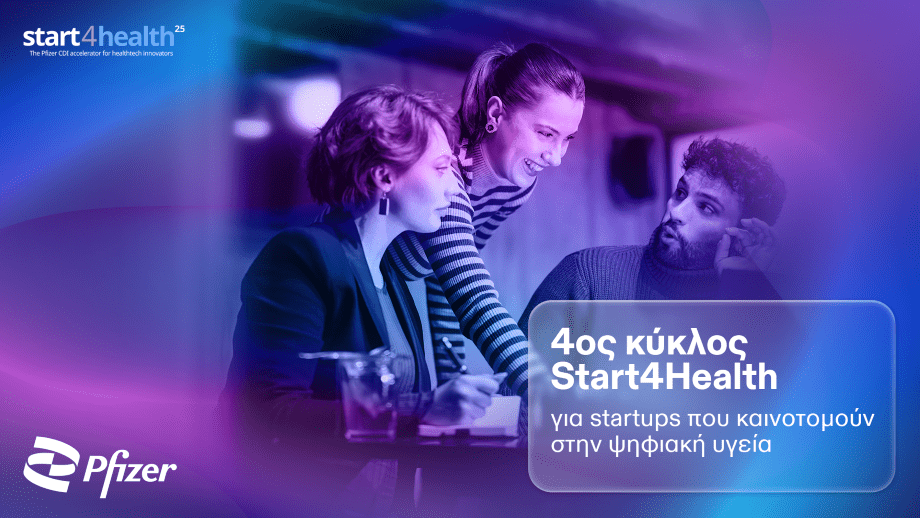 Το Κέντρο Ψηφιακής Καινοτομίας της Pfizer, ανακοινώνει την έναρξη του 4ου κύκλου του Start4Health, ενός προγράμματος που στόχο έχει την ενδυνάμωση του οικοσυστήματος καινοτομίας στη χώρα μας, αλλά και την ανάδειξη πρωτοποριακών ψηφιακών λύσεων στην Υγεία.