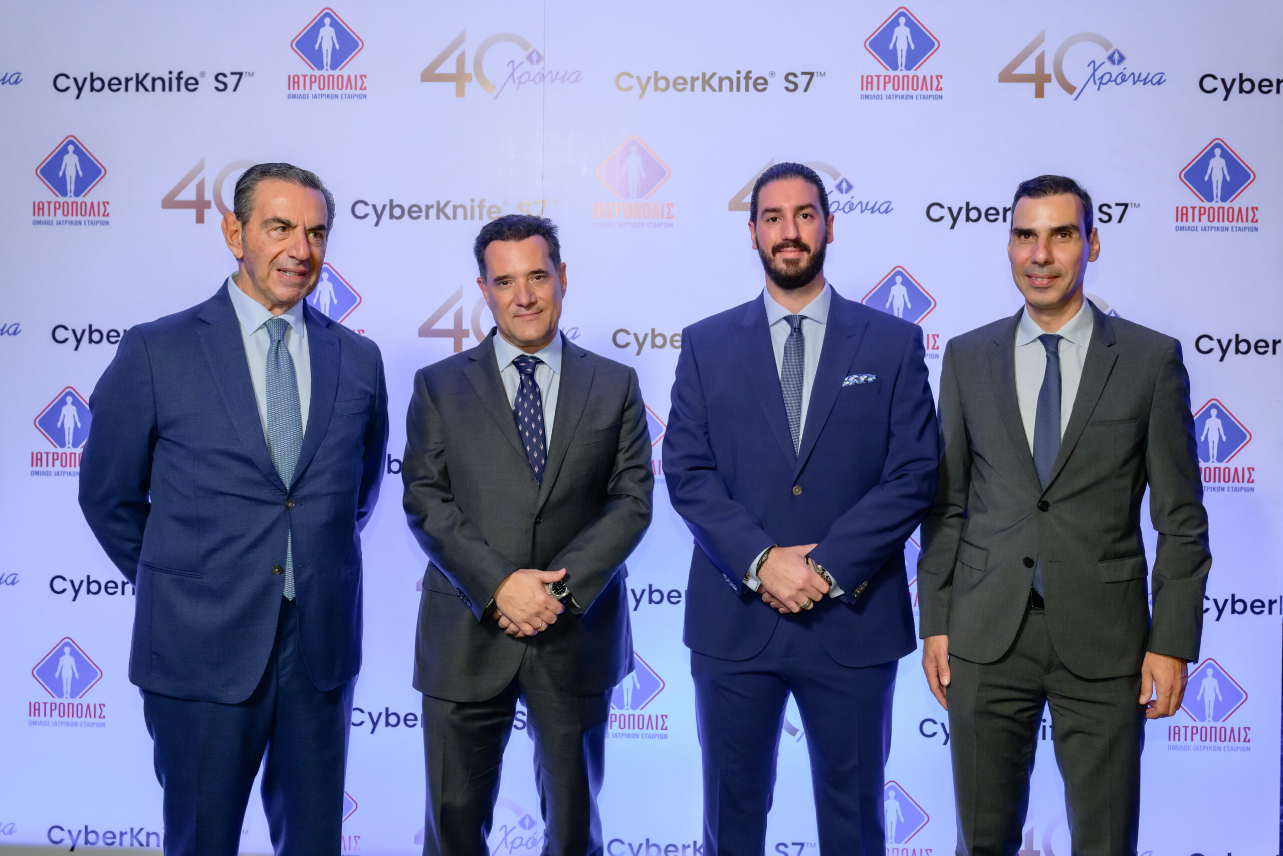 παρευρισκόμενους, σημείωσε ότι για το Ιατρόπολις η γιορτή είναι διπλή, καθώς πέρα από την έλευση του υπερσύγχρονου CyberKnife S7, ο Όμιλος γιορτάζει παράλληλα και τη συμπλήρωση 40 χρόνων λειτουργίας. Αφού παρουσίασε τους σημαντικότερους σταθμούς στη 40χρονη ιστορία του Ιατρόπολις, τόνισε: «η επένδυση του Ομίλου Ιατρόπολις σε τεχνολογίες αιχμής, όπως είναι το νέο CyberKnife S7, επιβεβαιώνει ότι ο στόχος της 40χρονης πλέον πορείας μας παραμένει ένας: να φέρουμε τους ασθενείς και τις οικογένειές τους πιο κοντά σε ένα καλύτερο και υγιέστερο αύριο. Με το νέο CyberKnife επιχειρούμε άλλο ένα άλμα στο μέλλον, ευελπιστώντας η τεχνολογική καινοτομία να ενισχύσει τα “χέρια” των γιατρών, ώστε μαζί με την επιστημονική γνώση, να κάνουμε ένα βήμα πιο