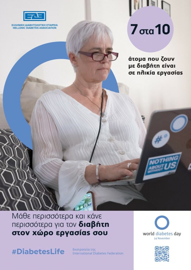 «Επτά στους 10 ενήλικες (412 εκατομμύρια άτομα) που ζουν με διαβήτη παγκοσμίως βρίσκονται σε ηλικία εργασίας. Επίσης, σύμφωνα με έρευνα της IDF, 3 στα 4 άτομα που ζουν με διαβήτη έχουν βιώσει άγχος, κατάθλιψη ή άλλη ψυχική συνθήκη λόγω της πάθησής τους, ενώ 4 στα 5 άτομα που ζουν με διαβήτη έχουν βιώσει επαγγελματική εξουθένωση εξαιτίας της πάθησης. Για εκατομμύρια εργαζομένους, ο διαβήτης είναι μια καθημερινή πραγματικότητα – αλλά στον χώρο εργασίας μπορεί συχνά να γίνει πηγή άγχους, στιγματισμού και φόβου. Παρά την αυξανόμενη ευαισθητοποίηση, πολλά άτομα που ζουν με διαβήτη εξακολουθούν να δίνουν αγώνα για να ισορροπήσουν ανάμεσα στην υγεία τους και στις προσδοκίες της εργασίας τους, με αποτέλεσμα να αποκρύπτουν ή να δυσκολεύονται να μιλήσουν ανοιχτά για την κατάστασή τους. Αυτή η συνεχιζόμενη δυσκολία, όχι μόνο επηρεάζει την ψυχική τους ευεξία, αλλά περιορίζει και την επαγγελματική τους εξέλιξη».