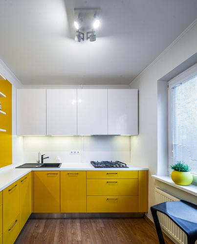 Όταν θέλετε να ενσωματώσετε χρώμα στην κουζίνα σας, μια ανοιχτόχρωμη ώχρα είναι η ιδανική επιλογή για να διατηρήσετε μία αίσθηση μεγαλύτερου χώρου. Αυτή η πρόταση είναι κατάλληλη ειδικά σε κουζίνες που δεν έχουν πολύ φυσικό φως.