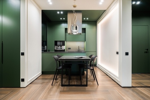 Σε αντίθεση με ό,τι πιστεύεται ευρέως, τα σκούρα χρώματα μπορούν επίσης να δημιουργήσουν την ψευδαίσθηση περισσότερου χώρου. Τα ανοιχτά χρώματα αντανακλούν το φως, τα σκούρα το απορροφούν. Αυτό μπορεί να δυσκολέψει τα μάτια σας να αντιληφθούν ακριβώς πού αρχίζει και πού τελειώνει ο χώρος.