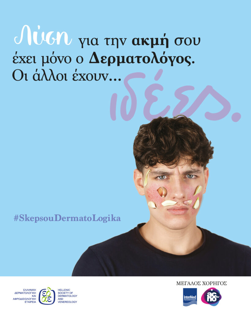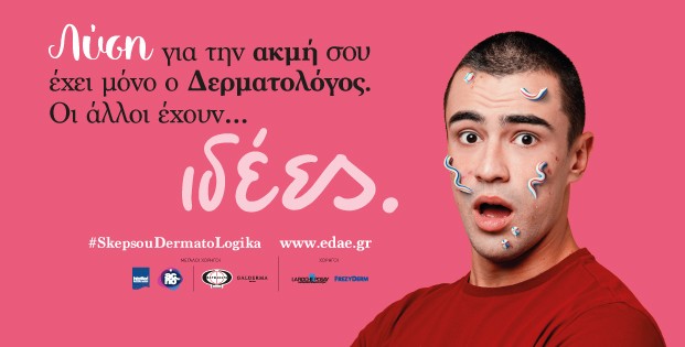 “Λύση για την ακμή σου έχει μόνο ο Δερματολόγος, οι άλλοι έχουν… ιδέες”, είναι το κεντρικό μήνυμα της πανελλαδικής καμπάνιας που ξεκινάει η Ελληνική Δερματολογική και Αφροδισιολογική Εταιρεία.