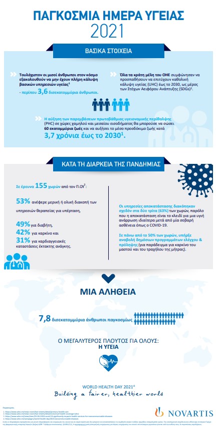 Με αφορμή την Παγκόσμια Ημέρα Υγείας η Novartis κάνει μία επισκόπηση για την σημερινή κατάσταση σε παγκόσμιο επίπεδο και πως έχουν επηρεαστεί οι δείκτες υγείας από την πανδημία του κορονοϊού: