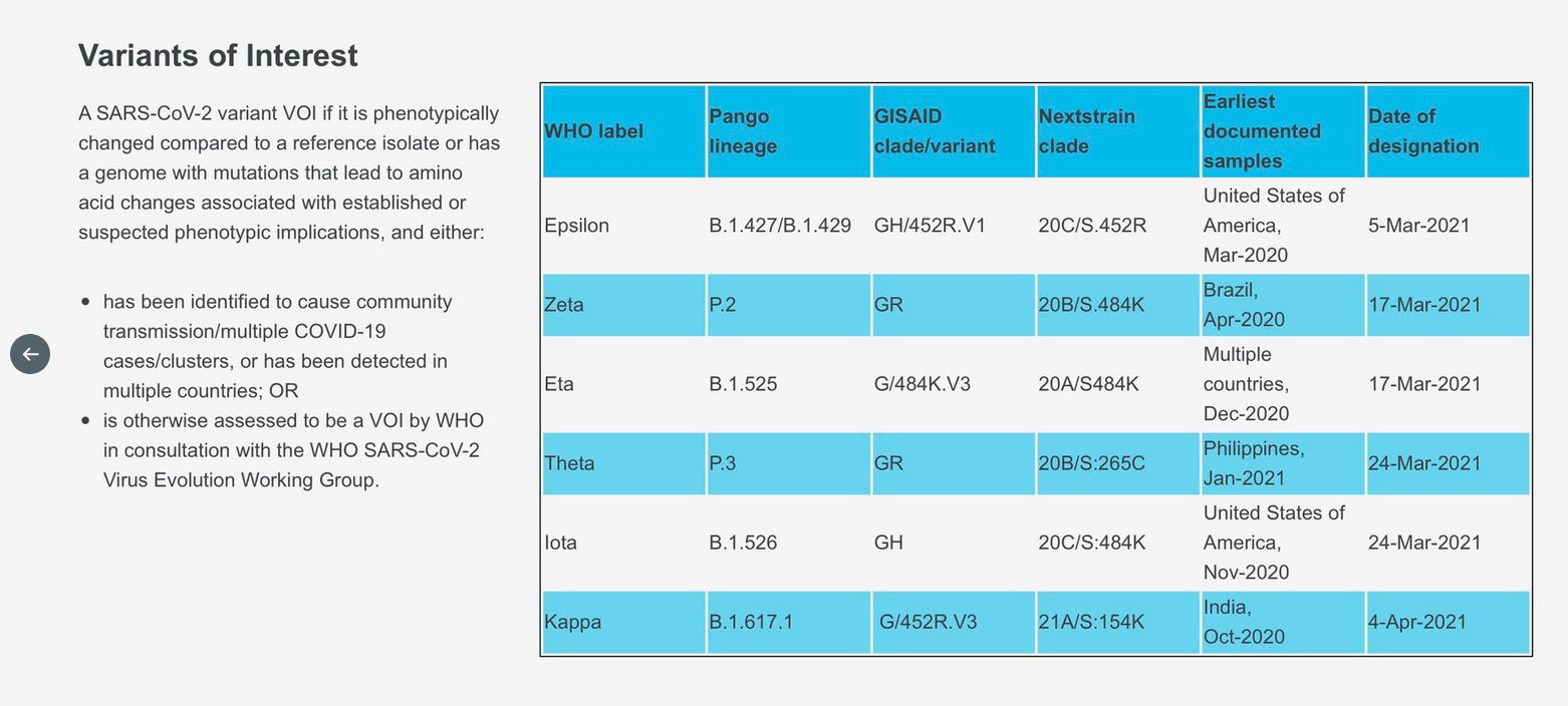 Η επιδημιολόγος, Μαρία Βαν Κέρχοφ, κατέστησε σαφές ότι οι νέες ονομασίες δεν αντικατέστησαν τα υπάρχοντα επιστημονικά ονόματα, όπως το B1617.2 για την ινδική παραλλαγή, τόνισε ωστόσο ότι «καμία χώρα δεν πρέπει να στιγματιστεί».