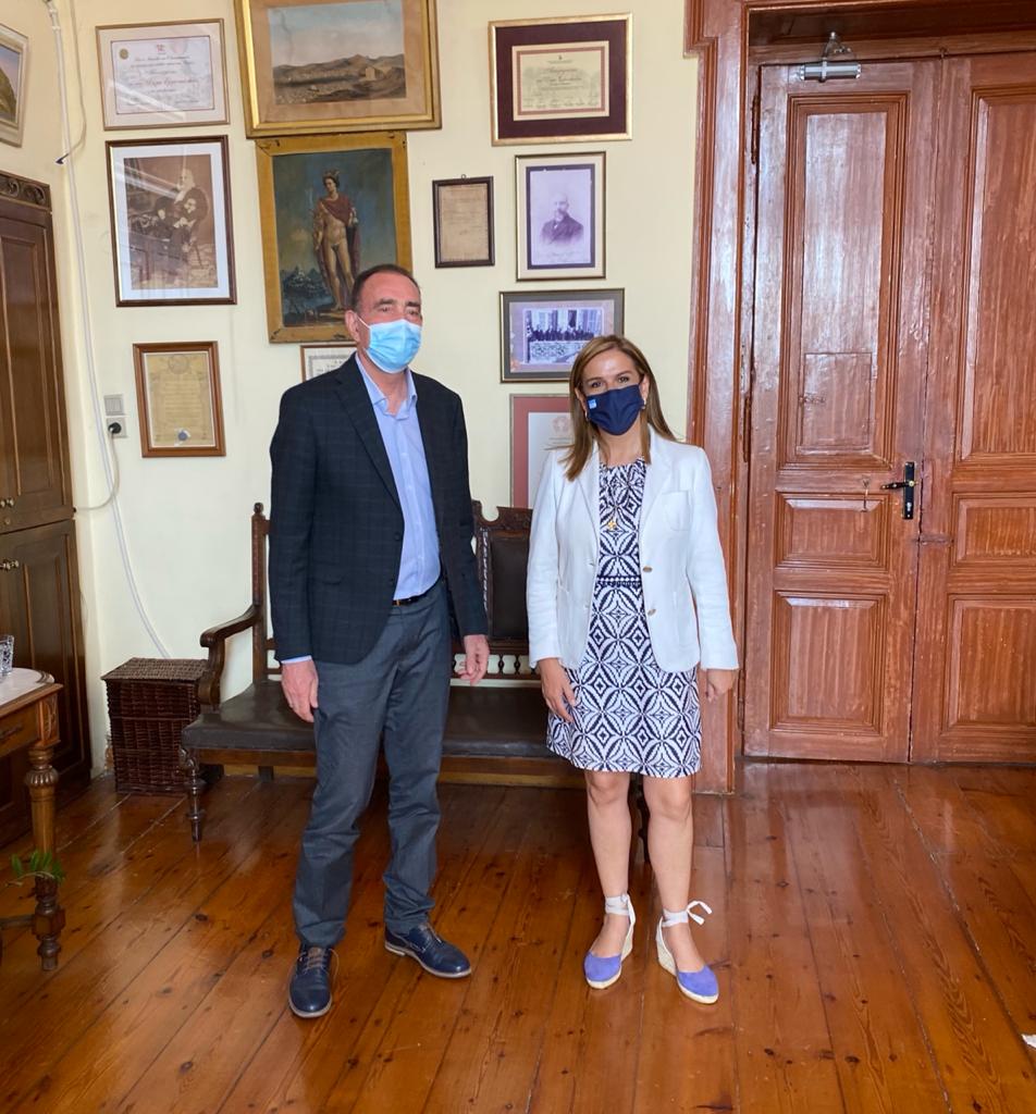 Ακολούθησε συνάντηση με τον Δήμαρχο Σύρου – Ερμούπολης, Νικόλαο Λειβαδάρα και τους Αντιπεριφερειάρχες Κυκλάδων, Γεώργιο Λεονταρίτη και Μεταφορών, Μάρκο Δαδάο με τους οποίους συζήτησε την ένταξη έργων Ψυχικής Υγείας στα σχεδιαζόμενα Περιφερειακά Επιχειρησιακά Προγράμματα 2021-2027.