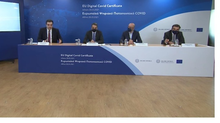 Το ευρωπαϊκό Ψηφιακό Πιστοποιητικό EU Digital Covid Certificate παρουσίασε ο υπουργός Ψηφιακής Διακυβέρνησης, Κυριάκος Πιερρακάκης, παρουσία του πρωθυπουργού Κυριάκου Μητσοτάκη, του προέδρου του Ευρωπαϊκού Συμβουλίου Σαρλ Μισέλ και του αντιπροέδρου της Ευρωπαϊκής Επιτροπής για την Προώθηση του Ευρωπαϊκού Τρόπου Ζωής, Μαργαρίτη Σχοινά.