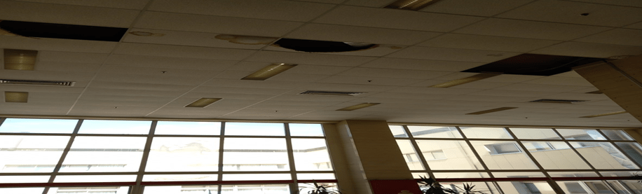 Με τις πρώτες βροχές έπεσαν τμήματα της ψευδοροφής στην κεντρική είσοδο στο Θριάσιο Νοσοκομείο.
