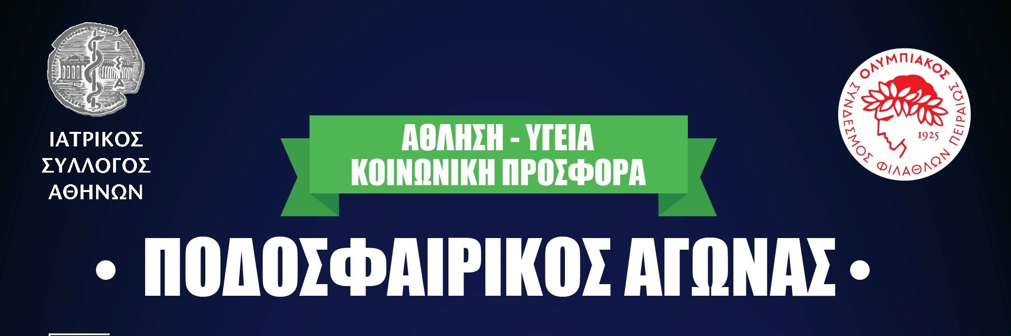 Φιλανθρωπικός ποδοσφαιρικός αγώνας θα πραγματοποιηθεί την ερχόμενη Δευτέρα 20 Οκτωβρίου μεταξύ των βετεράνων της ΠΑΕ ΟΛΥΜΠΙΑΚΟΣ και της Ποδοσφαιρικής Ομάδας Ιατρών ΙΣΑ, με τα έσοδα να διατίθενται στο ιατρείο κοινωνικής αλληλεγγύης και στο Ίδρυμα «Αρωγή» του Δήμου Αχαρνών.