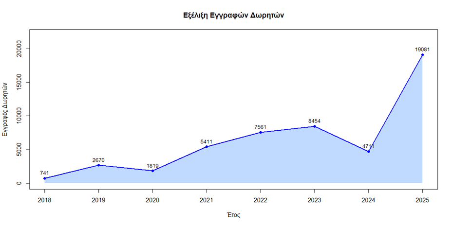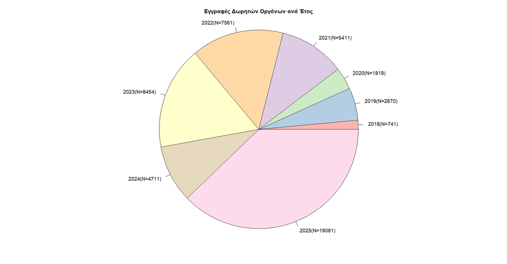Η εντυπωσιακή αυτή αύξηση κατά 42% σε σχέση με το σύνολο των εγγεγραμμένων δωρητών από το 2018, ανεβάζει πλέον τον αριθμό των πολιτών που έχουν εκδηλώσει έμπρακτα την επιθυμία να προσφέρουν ζωή, στους 50.000.