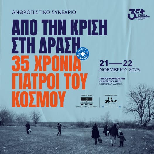Οι Γιατροί του Κόσμου Ελλάδας συμπληρώνουν 35 χρόνια αδιάλειπτης παρουσίας και προσφοράς στην υπεράσπιση του θεμελιώδους δικαιώματος όλων στην υγεία και τιμούν την επέτειο με τη διοργάνωση ενός μεγάλου ανθρωπιστικού συνεδρίου με τίτλο «Από την κρίση στη δράση: 35 χρόνια Γιατροί του Κόσμου». Το συνέδριο θα πραγματοποιηθεί στις 21 και 22 Νοεμβρίου 2025, στο Stelios Foundation Conference Hall (Κυδαθηναίων 22, Πλάκα), με τη φιλοξενία και ευγενική υποστήριξη του Stelios Philanthropic Foundation, που καλύπτει τα έξοδα παραγωγής και παραχωρεί τον χώρο.
