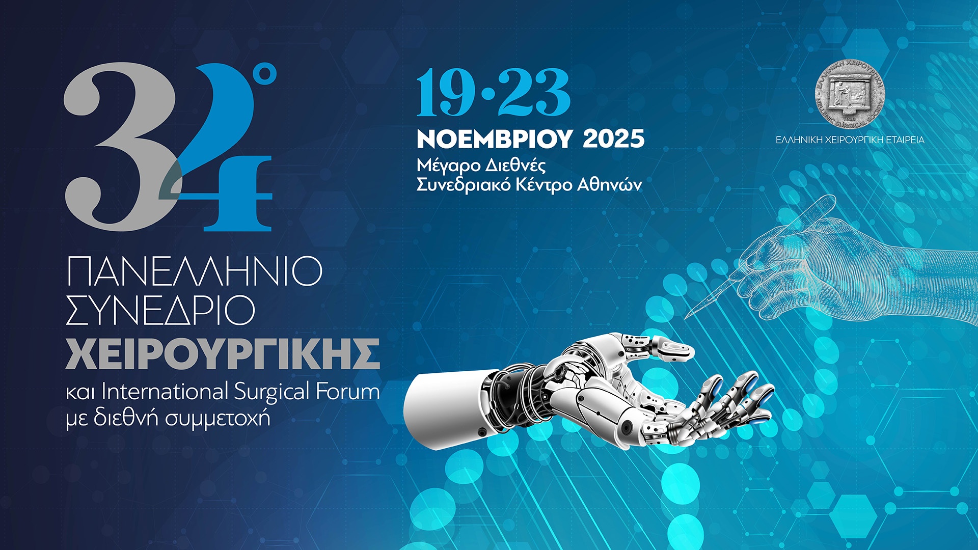 Ένα από τα κορυφαία ιατρικά γεγονότα της χρονιάς ετοιμάζεται να φιλοξενήσει η Αθήνα από τις 19 έως τις 23 Νοεμβρίου 2025, καθώς περισσότεροι από 1.500 Έλληνες και ξένοι σύνεδροι θα συμμετάσχουν στο 34ο Πανελλήνιο Συνέδριο Χειρουργικής & International Surgical Forum. Η διοργάνωση της Ελληνικής Χειρουργικής Εταιρείας στο Μέγαρο Διεθνές Συνεδριακό Κέντρο Αθηνών αναμένεται να συγκεντρώσει το ενδιαφέρον της διεθνούς χειρουργικής κοινότητας. Η επίσημη Τελετή Έναρξης, ανοιχτή στο κοινό, θα πραγματοποιηθεί την Τετάρτη 19 Νοεμβρίου με ομιλητή τον Ακαδημαϊκό Σταμάτιο Κριμιζή.