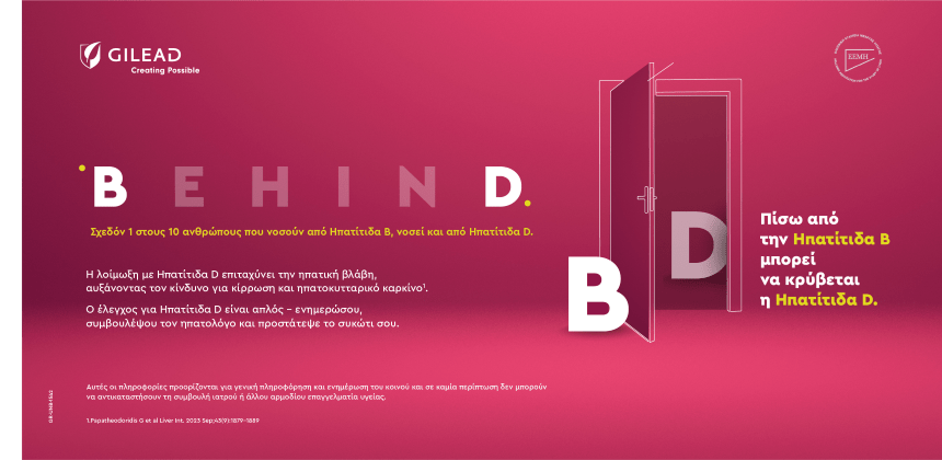 Με στόχο να αναδείξει αυτή την «αόρατη» απειλή, η Gilead Sciences Ελλάδος, σε συνεργασία με την Ελληνική Εταιρεία Μελέτης Ήπατος (Ε.Ε.Μ.Η.), υλοποιεί την καμπάνια ενημέρωσης BehinD – Πίσω από την Ηπατίτιδα Β μπορεί να κρύβεται η Ηπατίτιδα D.