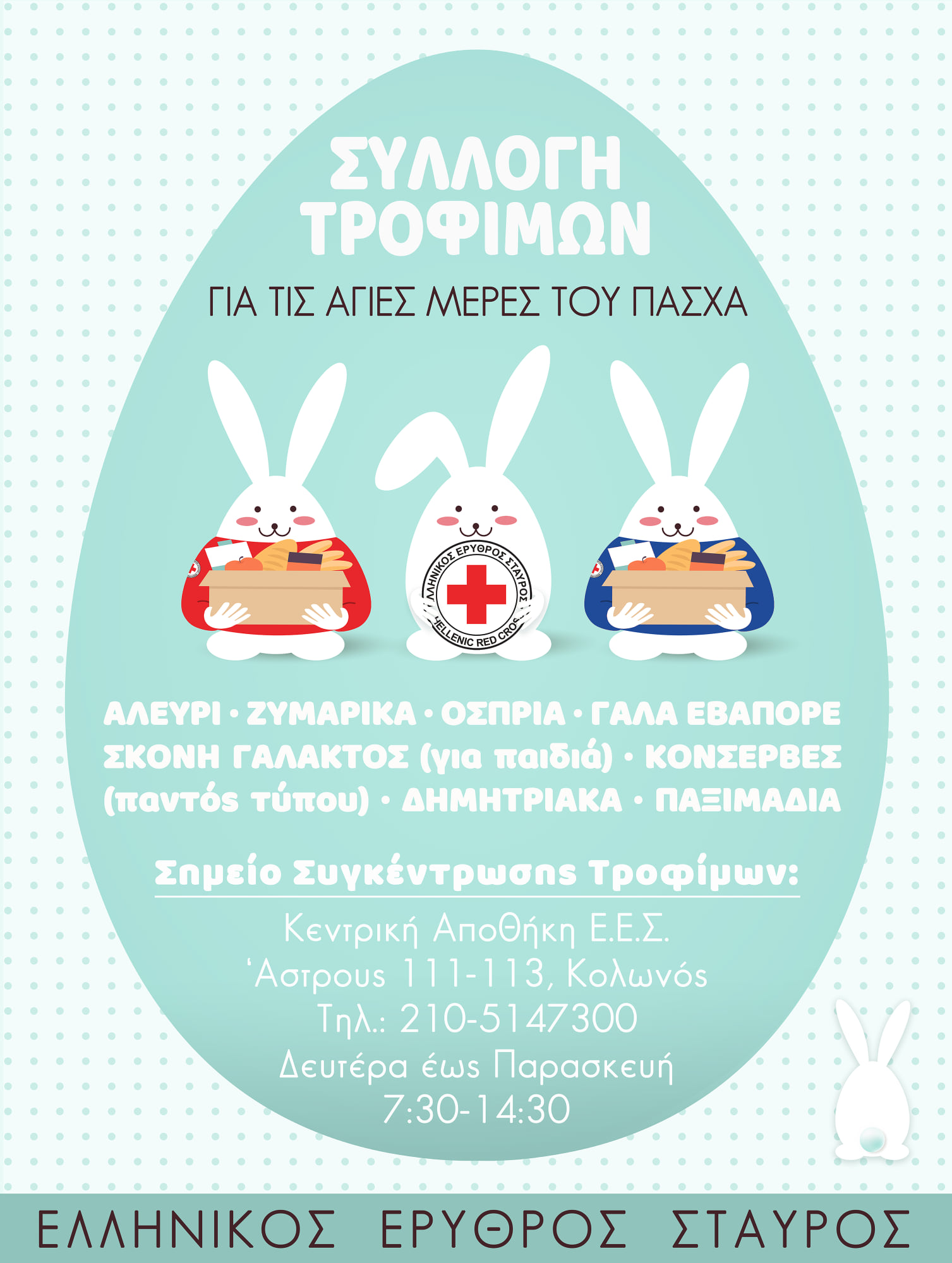 Κάλεσμα για συλλογή τροφίμων που θα προσφερθούν σε ανθρώπους με σοβαρά κοινωνικοοικονομικά προβλήματα τις ημέρες του Πάσχα απευθύνει ο Ελληνικός Ερυθρός Σταυρός, αναγνωρίζοντας την τεράστια ανάγκη υποστήριξης των συνανθρώπων μας που πλήττονται σκληρά από την ανεργία και την φτώχεια εν μέσω πανδημίας